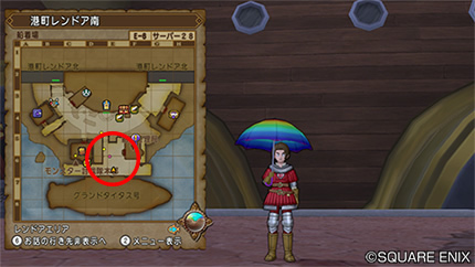 ※カメレオン傘は、娯楽島ラッカラン オーナーの館2階にいる「まとめ屋タバネ」からもらうことができます。
