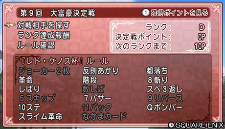 大富豪決定戦のランキングは冒険者の広場にて確認できます。