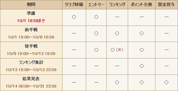 【前半戦】… 10月1日(水)19:00 ~ 10月8日(水)18:59
