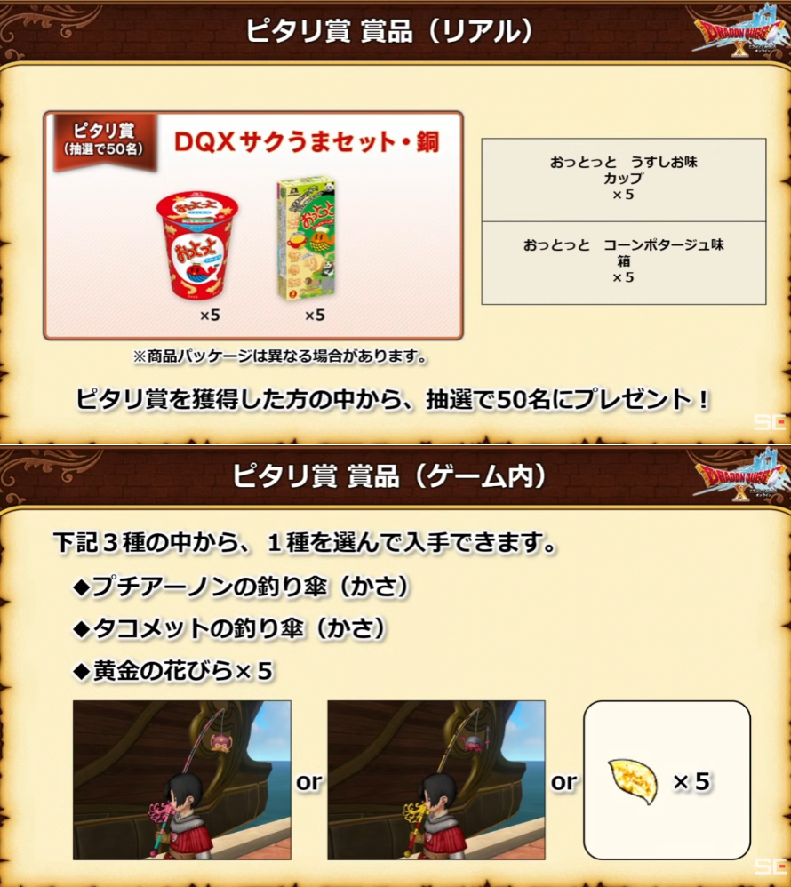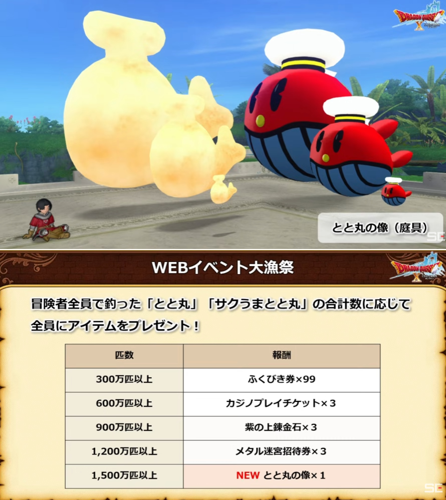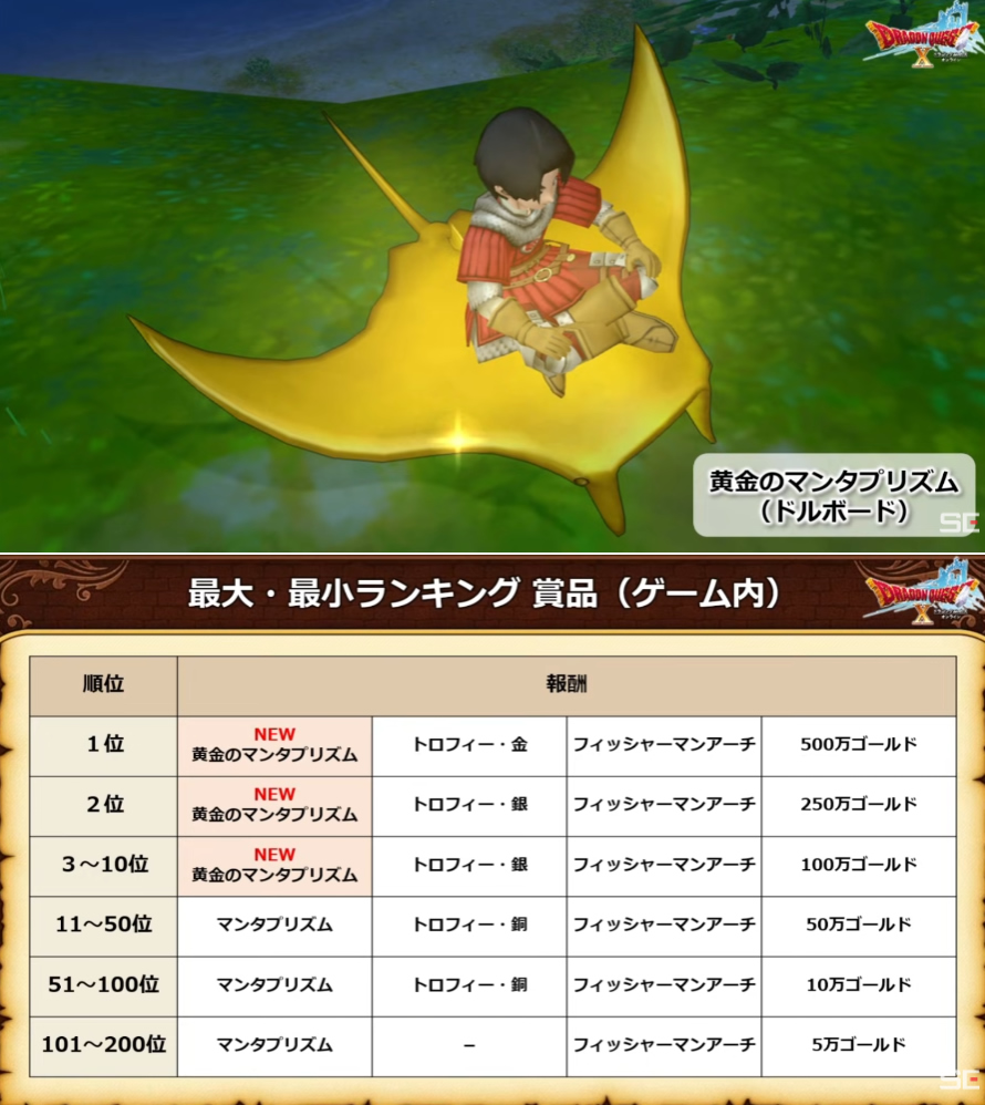 サイズ別報酬として「とと丸の帽子」、最大・最小ランキングの商品には「黄金のマンタプリズム」が追加されています。