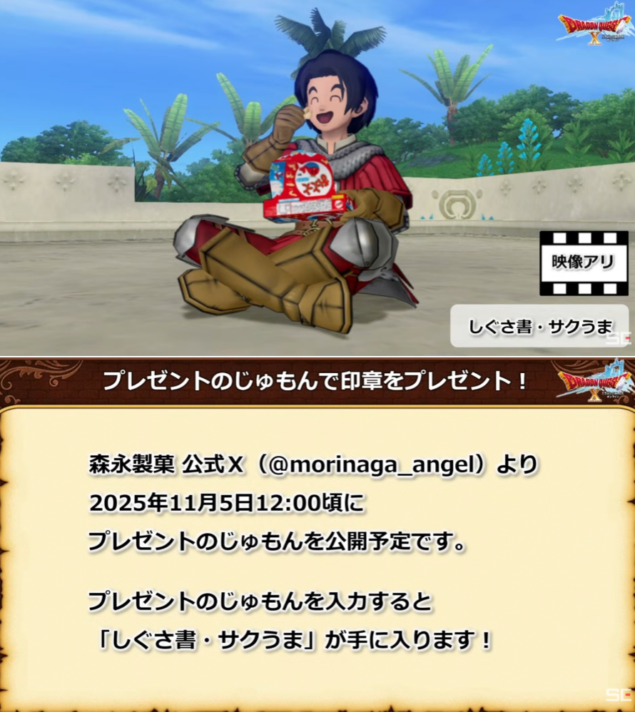11月5日には、「しぐさ書・サクうま」が手に入るプレゼントのじゅもんが森永製菓公式Xより公開されます!