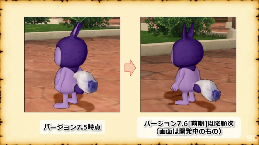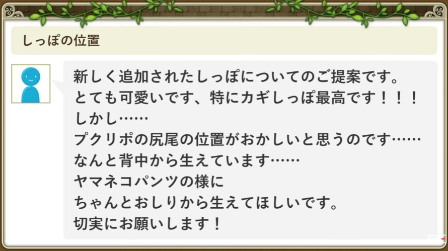 尻尾は傘装備で、もともと傘は手に持つように作られていたため、当時のメモリの制限によってアタッチ位置をたくさん作れなかった。