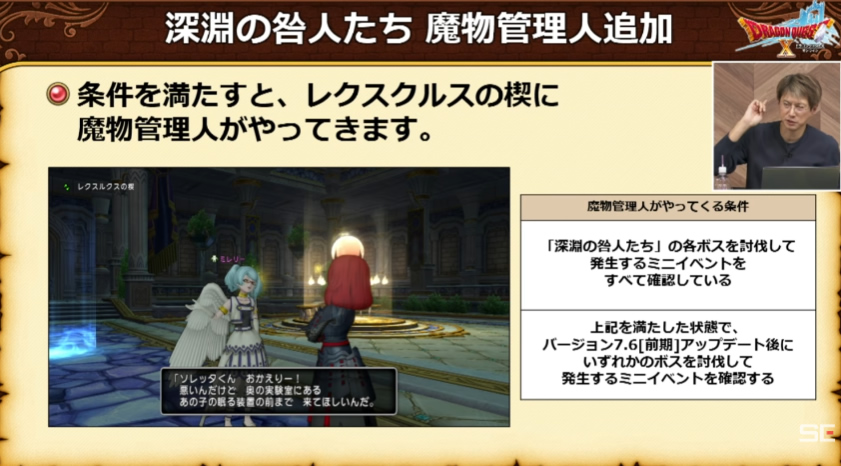 ○深淵の咎人たちの各ボスを倒すと発生するミニイベントをすべて確認すると、レクスルクスの楔に魔物管理人がやってきます。