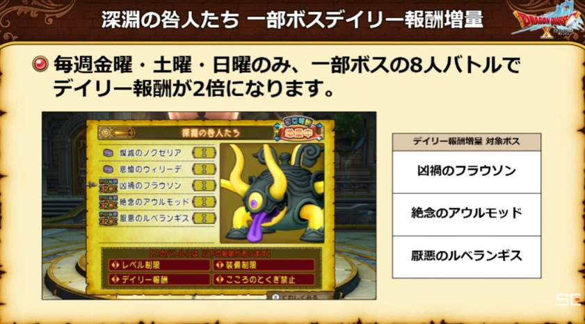 ○毎週(金・土・日)のみ、一部ボスの8人バトルで報酬2倍になります。