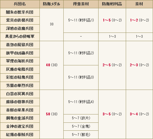 防衛戦で獲得できる「防衛メダル」「素材」の獲得量変更