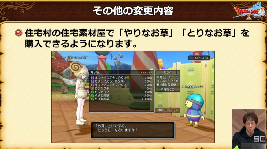 ○住宅村の素材屋で「やりなお草」「とりなお草」を購入できるようになります。